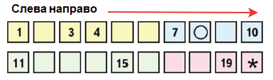 Которым по счёту будет в верхнем ряду квадрат с кружком, если считать слева направо? - Восьмым.