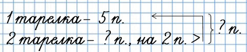 1) 5 + 2 = 7 (п.) - на другой тарелке.