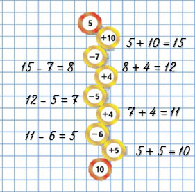 15 - 7 + 2 = 6   31 - 10 - 4 + 3 = 22