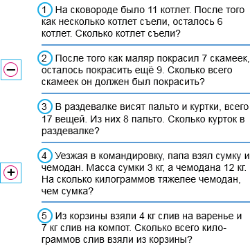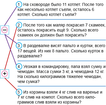 10. Устно реши задачи. Соедини линией кружок с номером задачи и карточку, на которой записано действие для её решения.