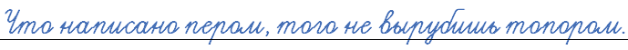 2. Что написано пером, того не вырубишь топором. Означает, что когда ты что-то напишешь, и другой человек это прочитает, изменить написанное уже нельзя.