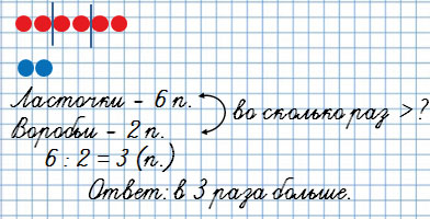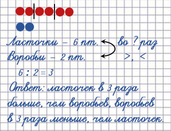 Во сколько раз больше ласточек, чем воробьев? Во сколько раз меньше воробьев, чем ласточек?