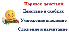 Вспомни порядок выполнения действий при нахождении значения числовых выражений со скобками и без них.