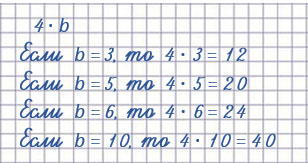 Вычисли значение выражения 4 • b, если b = 3, b = 5, b = 6, b = 10.