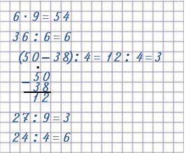 | 6 • 9 = 54 | 36 : 6 = 6 |