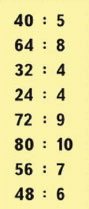 40 : 5 = 8