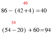 | 40 - (8 + 7) = 25 | 86 - (30 - 10) = 66 |