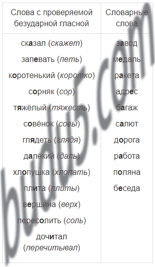 1. слова с проверяемой безударной гласной в корне (сказал - ска́жет)