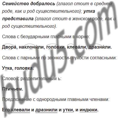 Прочитайте отрывок из сказки «Гадкий утёнок». Объясните, как род выделенных имён существительных в первом предложении помогает правильно связать их с глаголами.