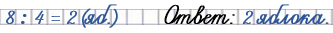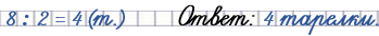 2) Восемь яблок разложили поровну на 4 тарелки. Сколько яблок на одной тарелке?