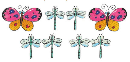 4. Рассмотри рисунок и скажи, во сколько раз бабочек меньше, чем стрекоз.