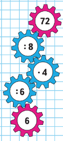 | 56 : 7 | 2 • 9 : 3 | 27 : 3 + 1 • 6 | 42 - 17 |