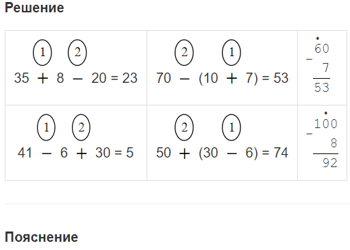 | 35 + 8 - 20 = 23 | 50 + (30 - 6) = 74 |
