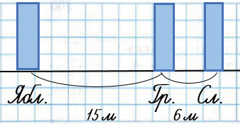 23. На участке вдоль одной стороны забора посадили яблоню, грушу и сливу. От яблони до груши 15 м, а от груши до сливы 6 м. Сколько может быть метров от яблони до сливы?