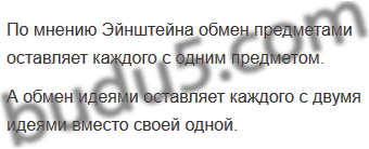 Прочитайте и спишите высказывание известного физика А. Эйнштейна. Что даёт, по мнению учёного, обмен предметами? А что даёт обмен мыслями?