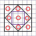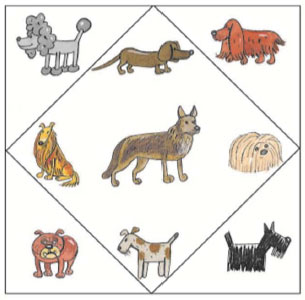 Рисуем кружки так, как в квадрате расположены собаки на рисунке.