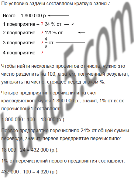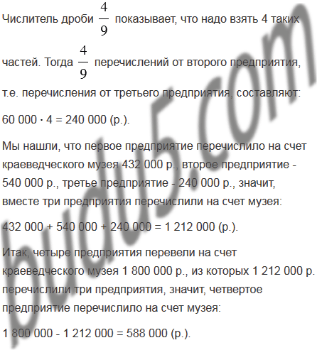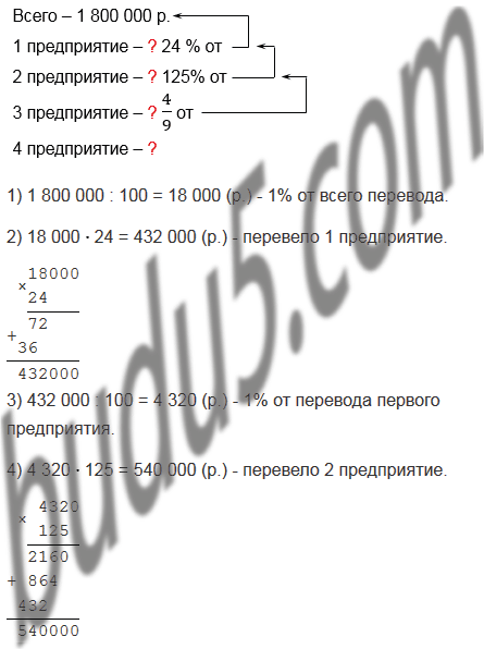 Четыре предприятия перевели на счет краеведческого музея 1 800 000 р. Первое предприятие перечислило 24% этой суммы, второе - 125% того, что перечислило первое предприятие, третье -