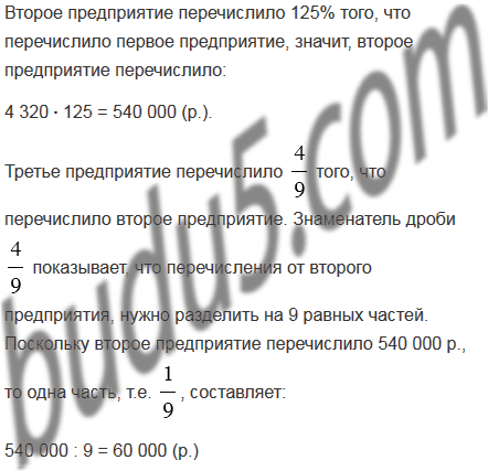 того, что перечислило второе предприятие, а остальную сумму - четвертое предприятие. Сколько рублей перечислило четвертое предприятие?