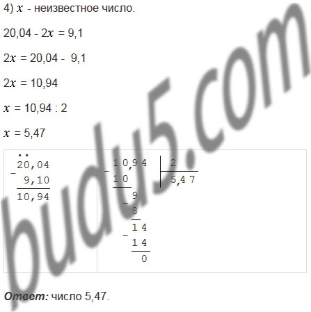 4) Какое удвоенное число надо вычесть из 20,04, чтобы получить 9,1?