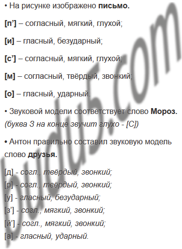 - Проверь, правильно ли Антон составил звуковую модель слова друзья.