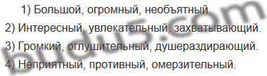 1) Огромный, необъятный, большой. 2) Захватывающий, интересный, увлекательный. 3) Оглушительный, душераздирающий, громкий. 4) Противный, неприятный, омерзительный.
