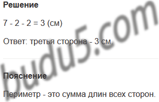 Задание № 5. Сумма всех длин сторон (периметр) треугольника 7 см. Длина двух одинаковых сторон - по 2 см. Чему равна третья сторона?