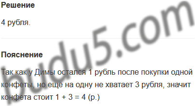 Задание № 10. Если Дима купит одну конфету, у него останется 1 руб., а на две конфеты ему не хватит 3 руб. Сколько стоит конфета?