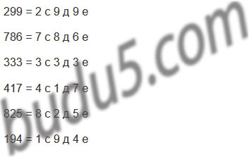 Задание № 4. Прочитай числа и скажи, сколько в них сотен, десятков и единиц: 299; 786; 333; 417; 825; 194.