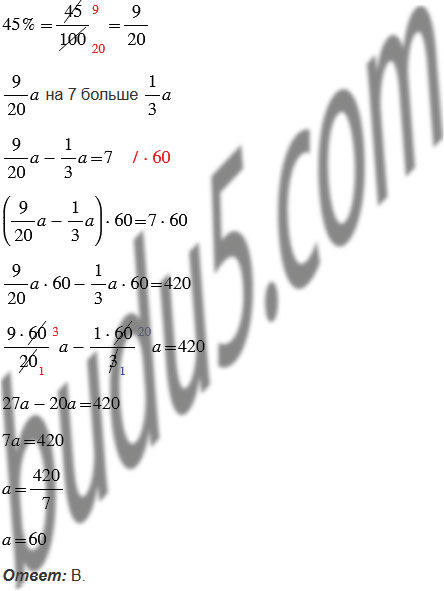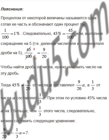 Известно, что 45% числа на 7 больше, чем этого числа. Найдите число .