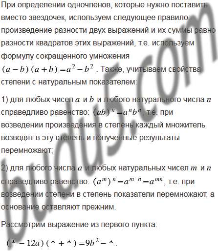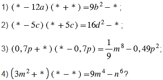 Какие одночлены надо поставить вместо звездочек, чтобы выполнялось тождество: