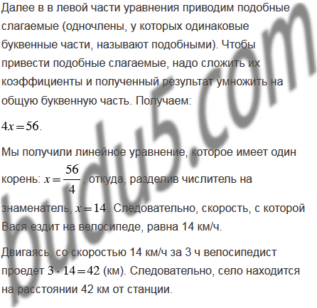 От села до станции Вася может доехать на велосипеде за 3 ч, а дойти пешком - за 7 ч. Скорость пешком на 8 км/ч меньше, чем скорость движения на велосипеде. С какой скоростью ездит Вася на велосипеде? На каком расстоянии находится село от станции?