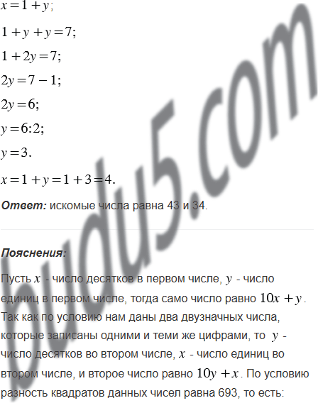 Разность квадратов двух двузначных чисел, записанных одними и теми же цифрами, равна 693. Найдите эти числа.