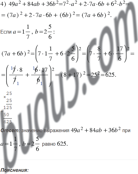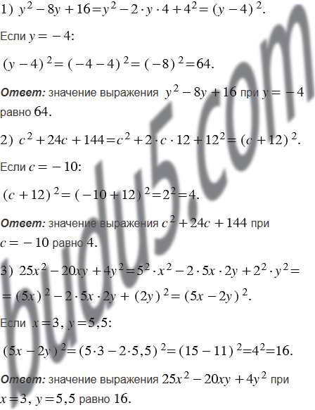 Найдите значение выражения, представив его предварительно в виде квадрата двучлена: