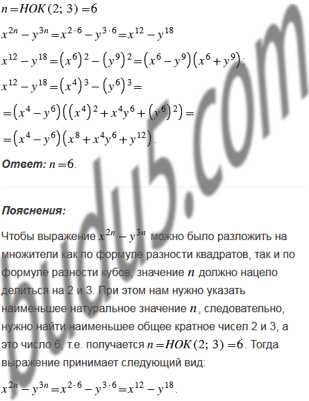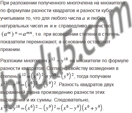 можно было разложить на множители как по формуле разности квадратов, так и по формуле разности кубов. Разложите полученный многочлен на множители по этим формулам.