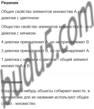 Сколько девочек принадлежит А, но не принадлежит В? Сколько девочек принадлежит В, но не принадлежит А? Сколько общих элементов у множеств А и В?