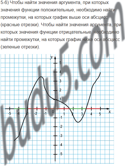 5) значения аргумента, при которых значения функции положительные;