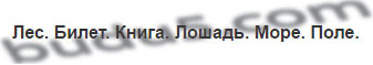 Ваня. Лес. Билет. Петров. Книга. Барсик. Лошадь. Михайловка. Море. Волга. Поле. Москва. Наташа.