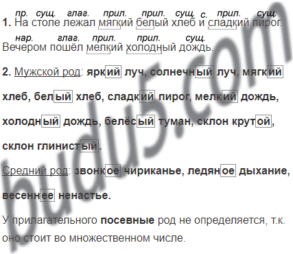 1. Прочитайте. Устно выполните разбор третьего и четвёртого предложений по частям речи. Выделите основы прилагательных.