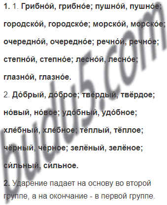 2. Отметьте, в какой группе прилагательных ударение падает на основу, в какой - на окончание.